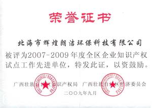 2007-2009 work advanced unit in the enterprise intellectual property rights | At the provincial level | 2009-09 | Intellectual property office/guangxi zhuang autonomous region, guangxi zhuang autonomous region economy committee |