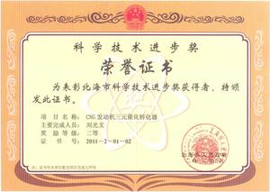 Certificate of industrialization demonstration project of national torch plan projects: diesel engine SCR catalysts industrialization demonstration project | National ministries and commissions | 2012-05 | Ministry of Science and Technology torch high and new technology industry development center |