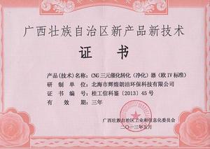 New technology products certificate [CNG ternary catalytic conversion (cleaning) (the four new standard)]